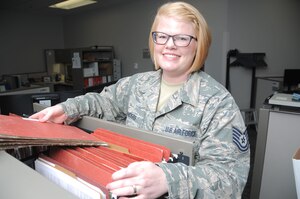 Senior Airman Millar, assigned to the 14th Intelligence Squadron, 655th Intelligence, Surveillance and Reconnaissance Group, plants an American flag on the grave of a servicemember during a Memorial Day service at the Dayton Veteran's Cemetery, Dayton, Ohio, May 28, 2018. Millar and Master Sgt.
