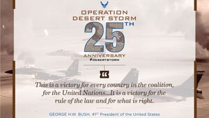 Operation Desert Storm was an exceptional example of Total Force integration in support of combat operations with an all-volunteer force.Jan. 16, 2016, marks the 25th anniversary of Desert Storm, the coalition effort to free Kuwait from the grips of an Iraq invasion force. Below are some factoids on