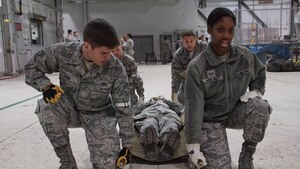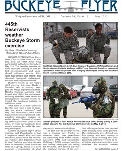 More than 130 Airmen from the 445th Airlift Wing participated in Buckeye Storm here May 2-3, 2015. The two-day exercise offered refresher training in post attack reconnaissance and unexploded ordinance sweeps, litter carry and medical care review, and chemical, biological, radiological, nuclear, and