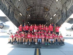 A fire truck is loaded onto a 445th Airlift Wing C-17 Globemaster III July 5, 2022 as part of a Denton Program movement. The C-17 flew to Joint Base Charleston, S.C., the same day and the fire truck has been pre-positioned for its next movement on July 11, 2022 to Belize. James York, III, started