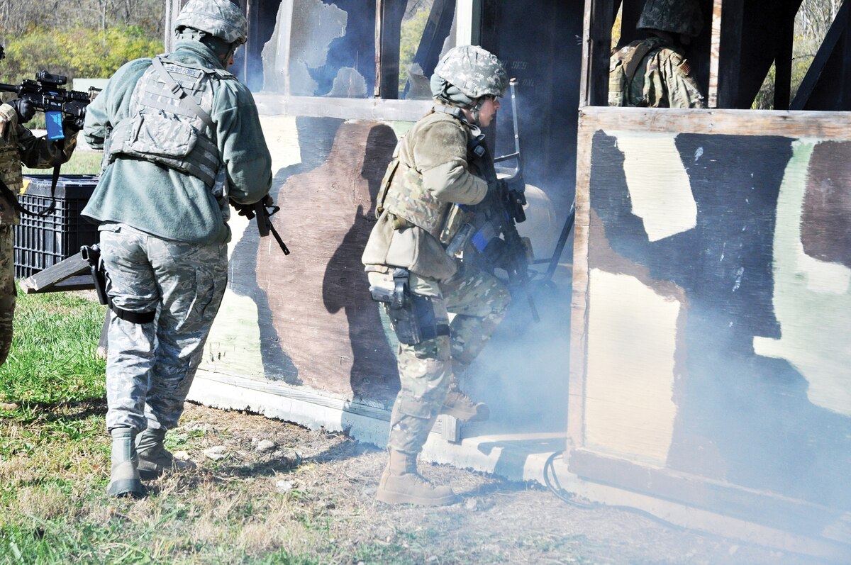 The 30 Reserve Citizen Airmen and 20 Guardsmen participated in eight separate training events, including hand and arm signals, command and control, shoot/no shoot situations, building clearing/sweeping, muzzle discipline, bounding/small unit tactics, and combatives/weapons retention.